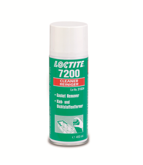 Loctite 7200 – продукт предназначенный для удаления отвержденных химических прокладок за счет их размягчения на фланцах, уменьшая таким образом объем физической работы (удаление скребком). После нанесения, продукт образует на прокладке слой пены, который не стекает с поверхности в течение требуемого времени. Loctite 7200 также применяется для удаления клеев, нагара, засохших масел и т.п.